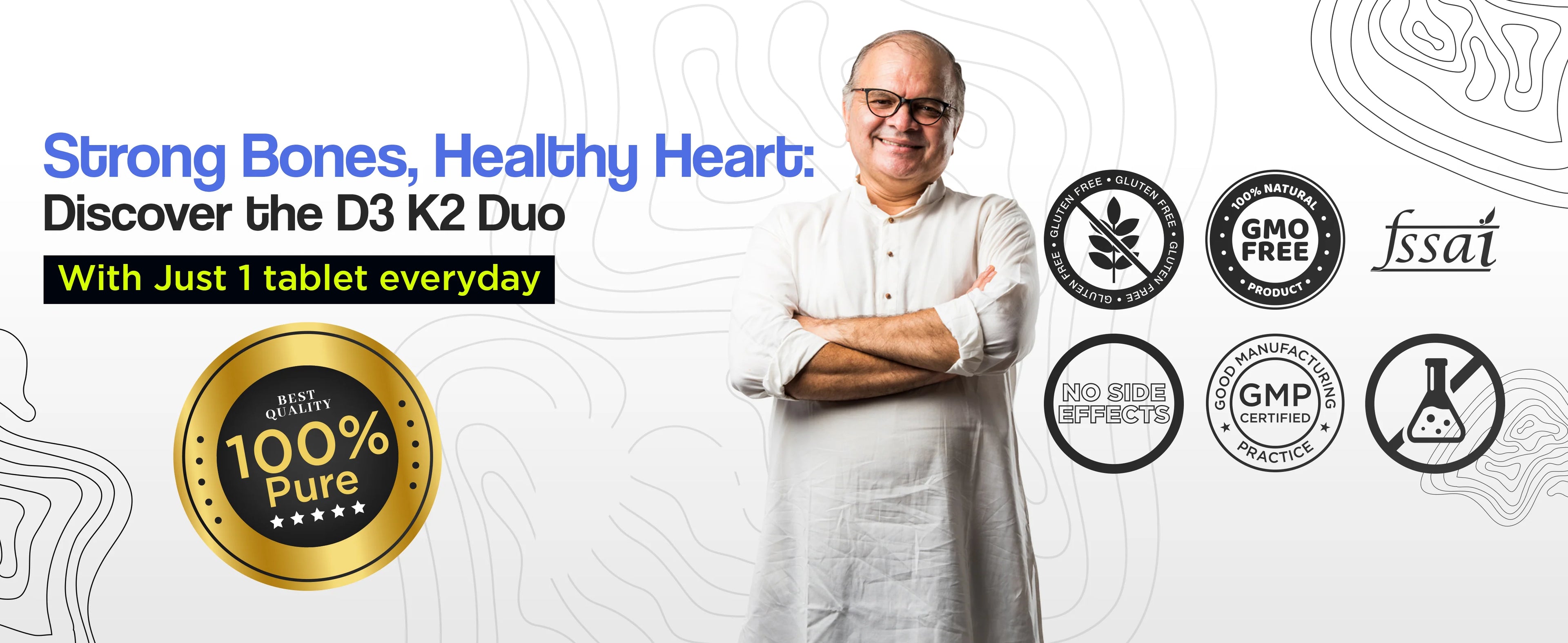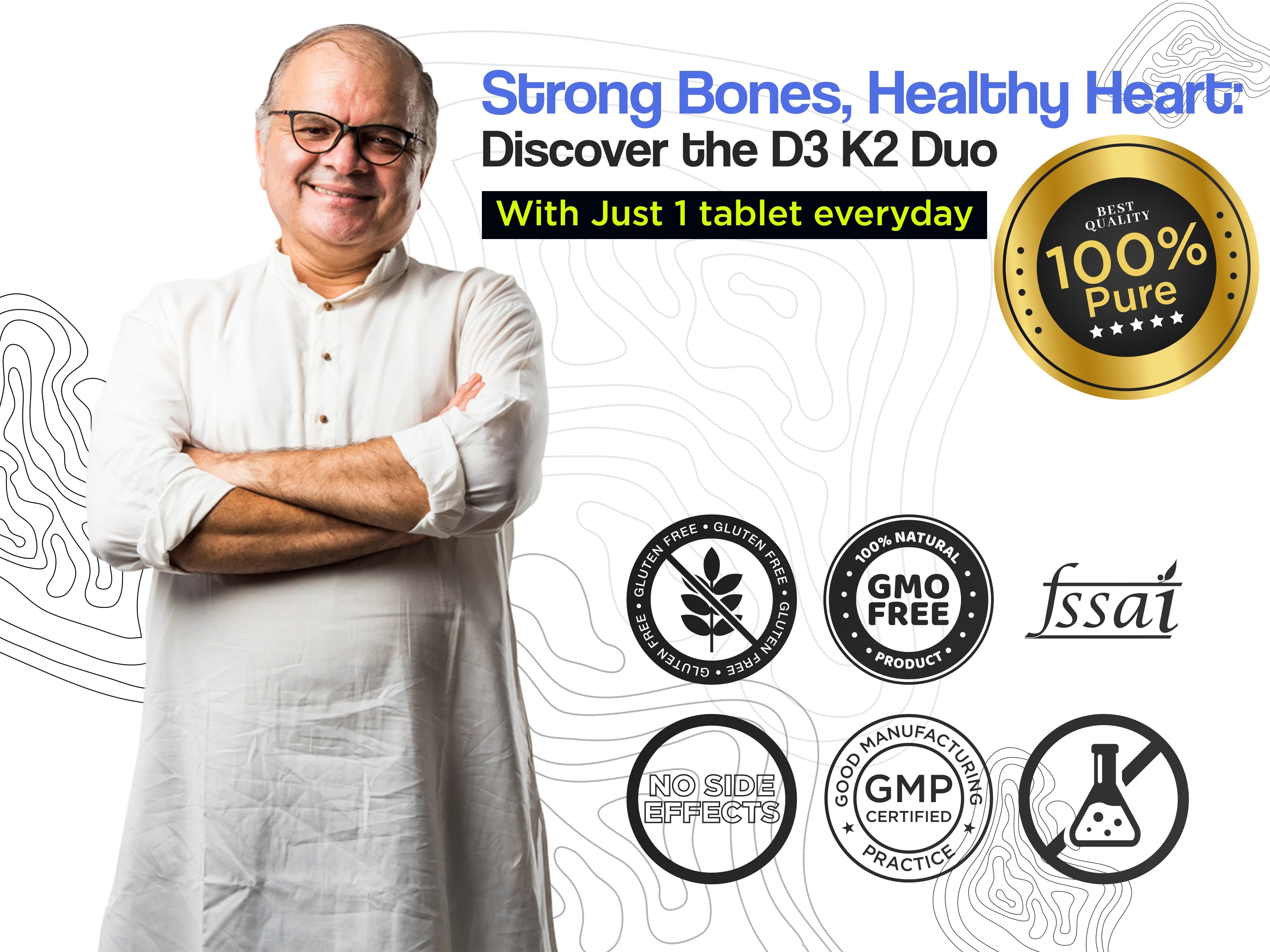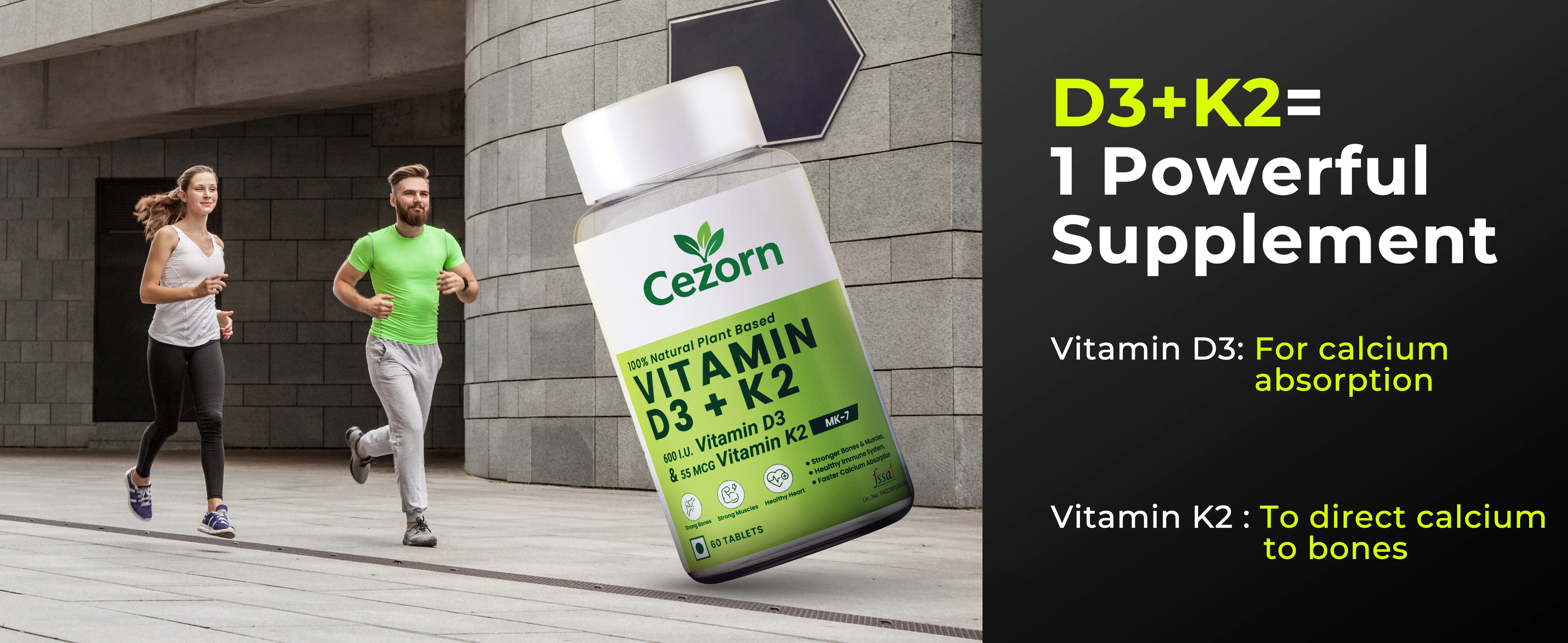 Cezorn Vitamin D3 + K2 Tablets is a perfect combination that helps you stay healthy by boosting your immune system. It encourages proteins in white blood cells that combat infections and is an immunity booster for adults. Vitamin K2 also helps synthesize crucial bone proteins and thus supports healthy bone metabolism. Both vitamin D3 and K2 work to foster bones most naturally. Vitamin D3 enhances calcium absorption; on the other hand, vitamin K2 stimulates bone metabolism. This coordination effectively transports calcium to your entire body and supports bone health.