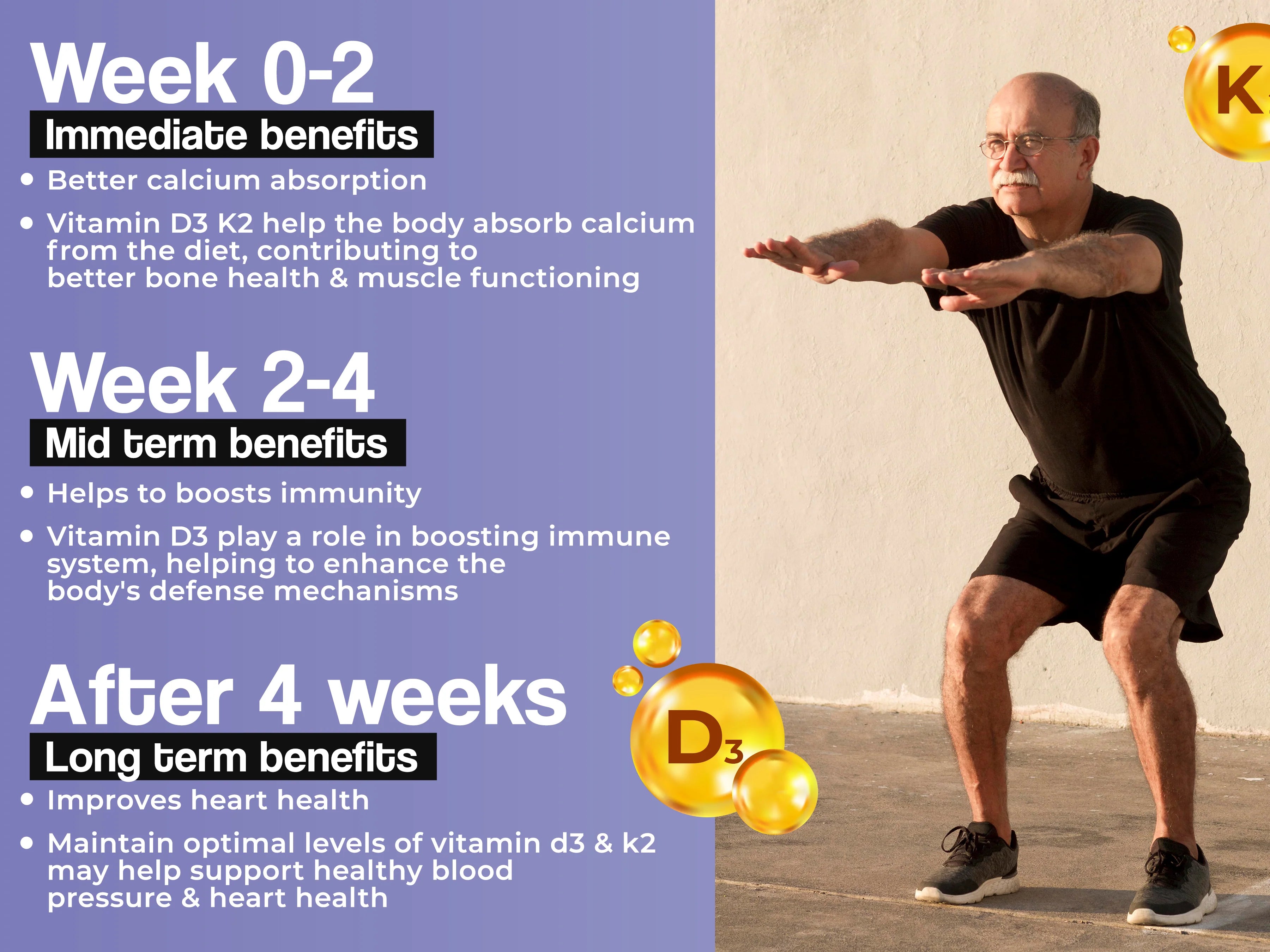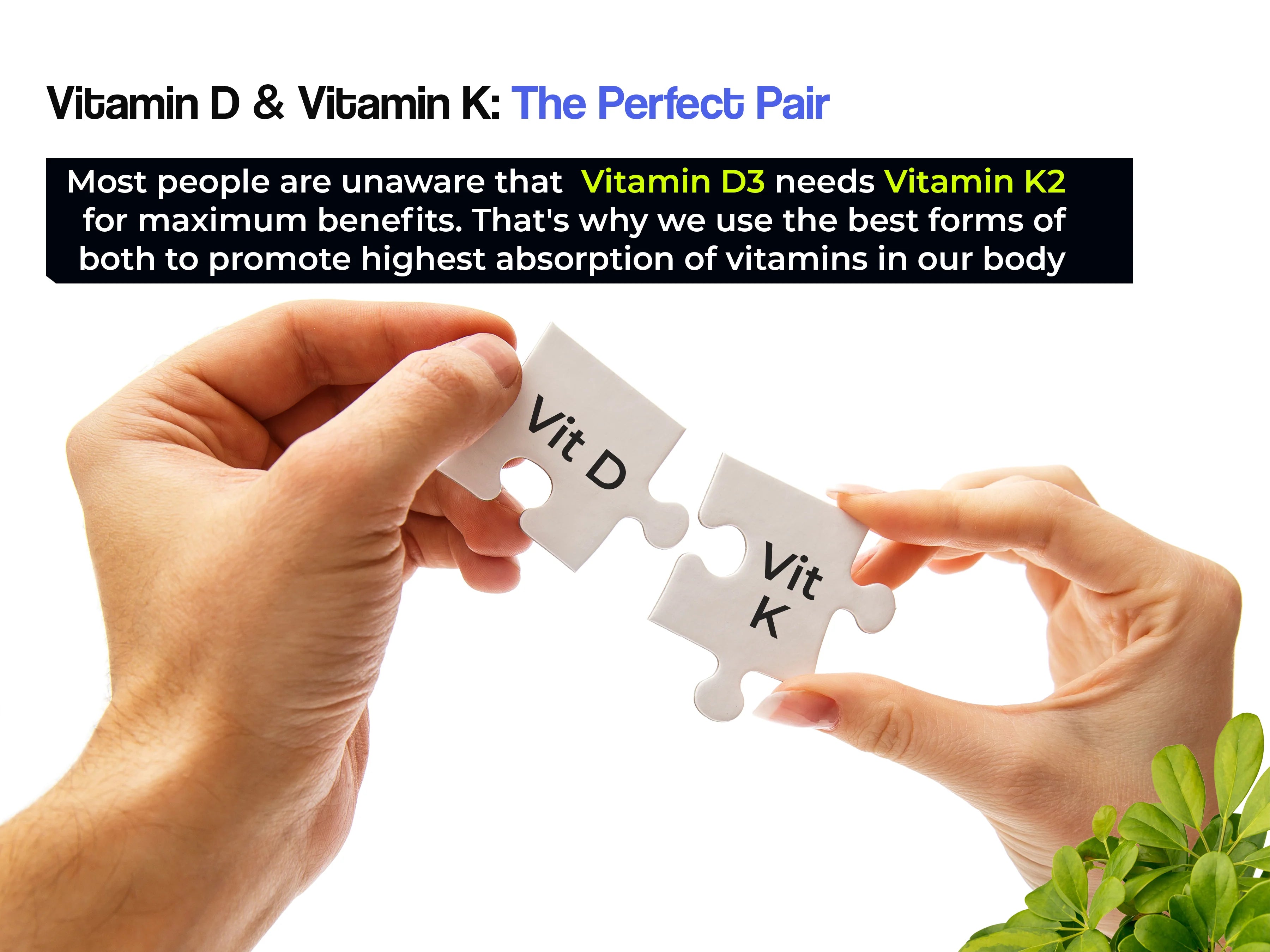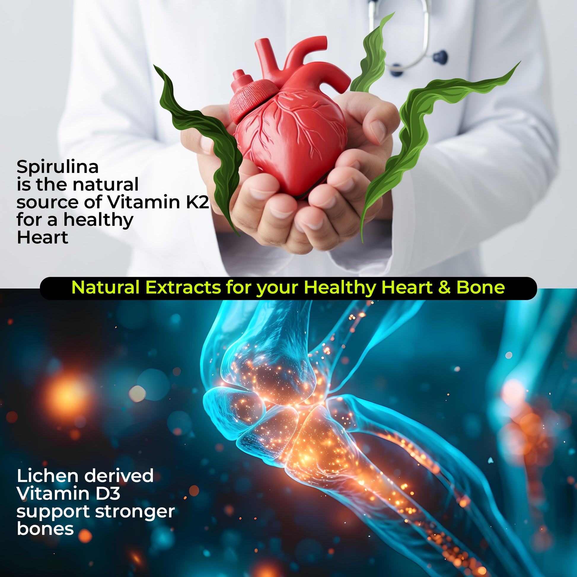 • HEALTHY HEART & MUSCLE STRENGTH: Vitamin D3 benefits skeletal muscle development and optimizes muscle strength. It also shows anticoagulant and anti-atherosclerosis effects improve cardiovascular function. Moreover, vitamin K2 is a crucial vitamin for healthy heart functioning.