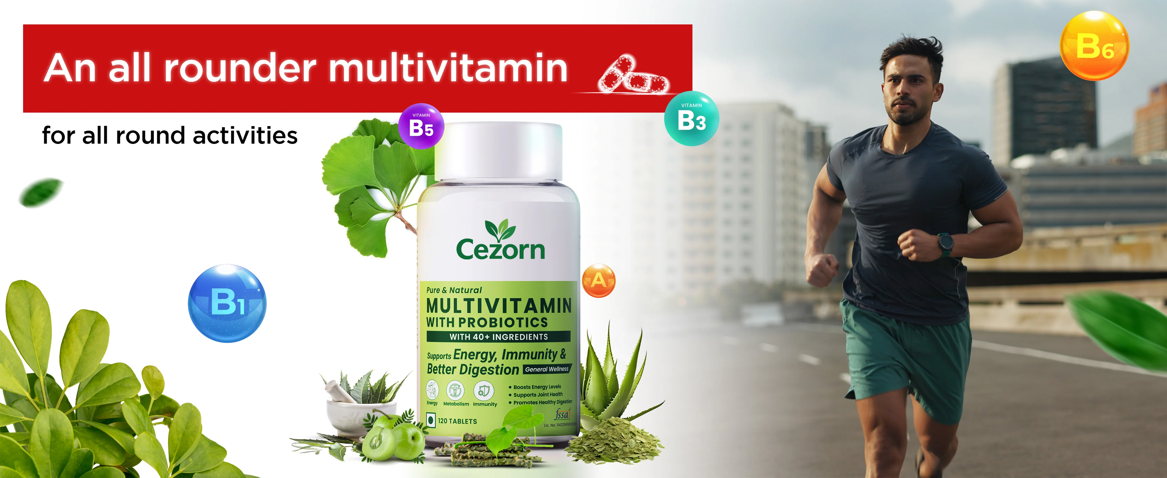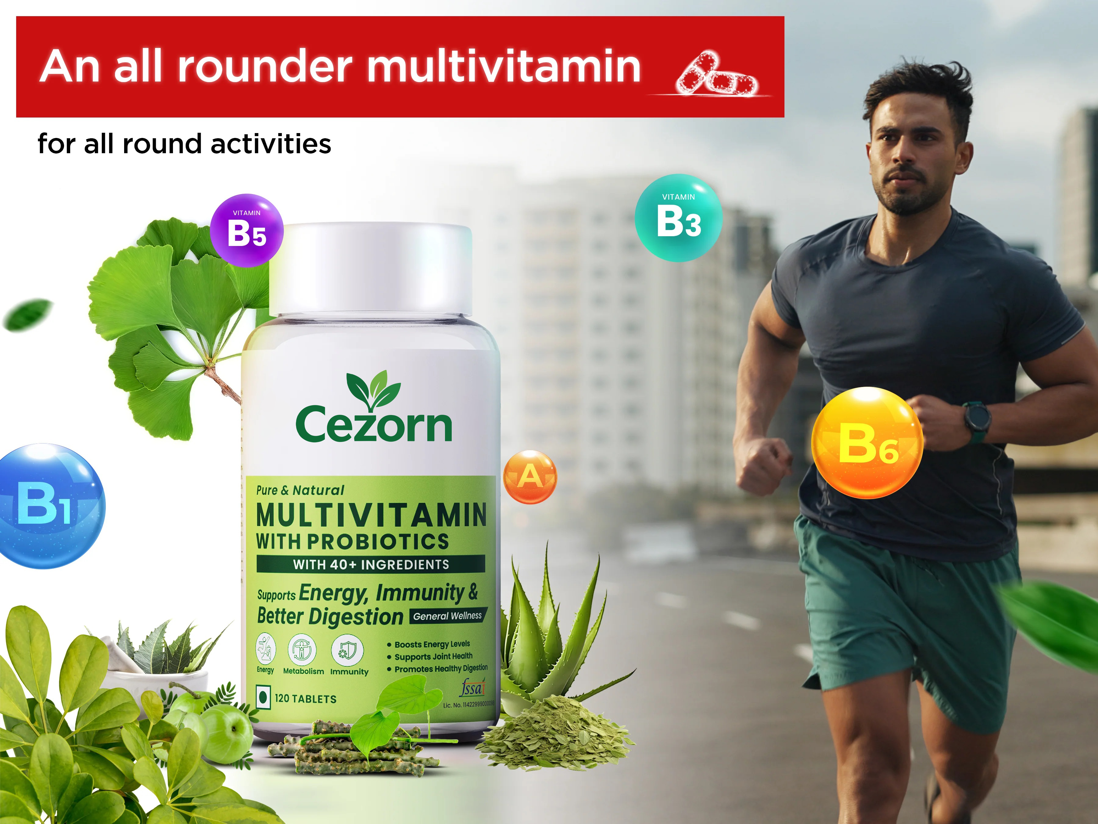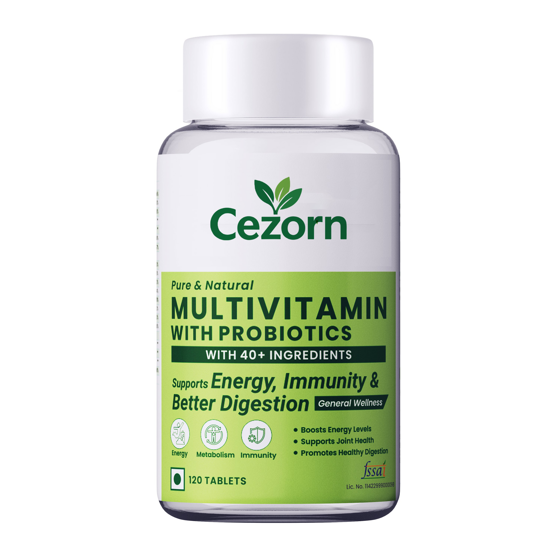 Cezorn Multivitamin Tablets with Probiotics supplements may help increase energy, and stamina levels, enhance nervous and immune systems, improve vision, and improve antioxidant capabilities. These multivitamin tablets are with herbs, vitamins, and minerals that boost your immunity.