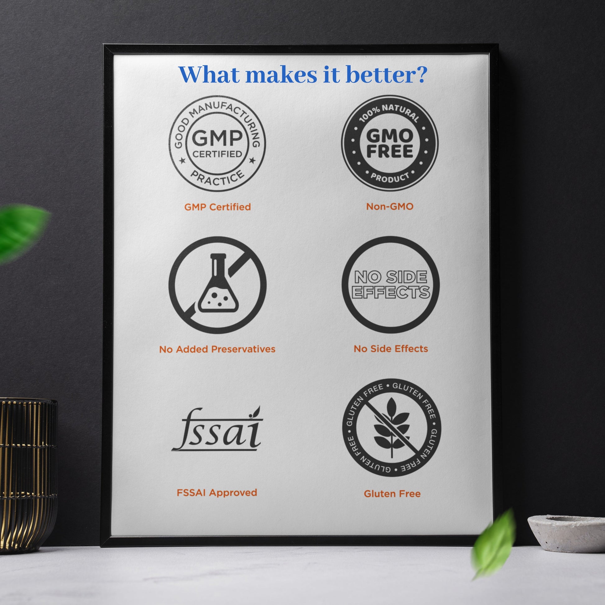 Our products are 100% plant-based, natural, and FSSAI-certified. They are free from heavy metals, ensuring no side effects while supporting a healthier lifestyle.