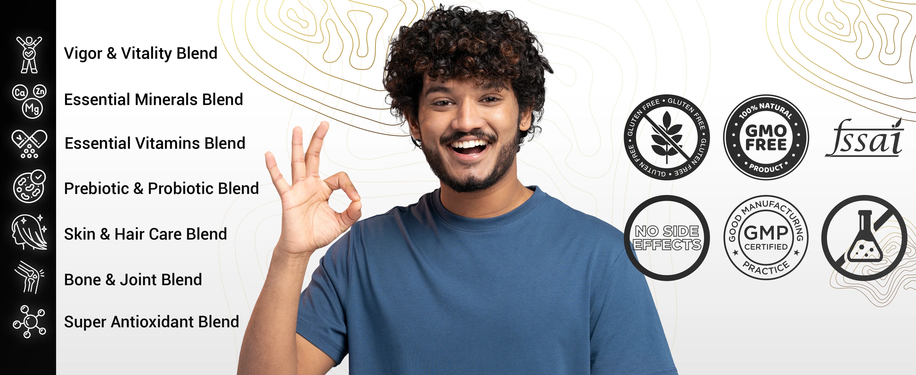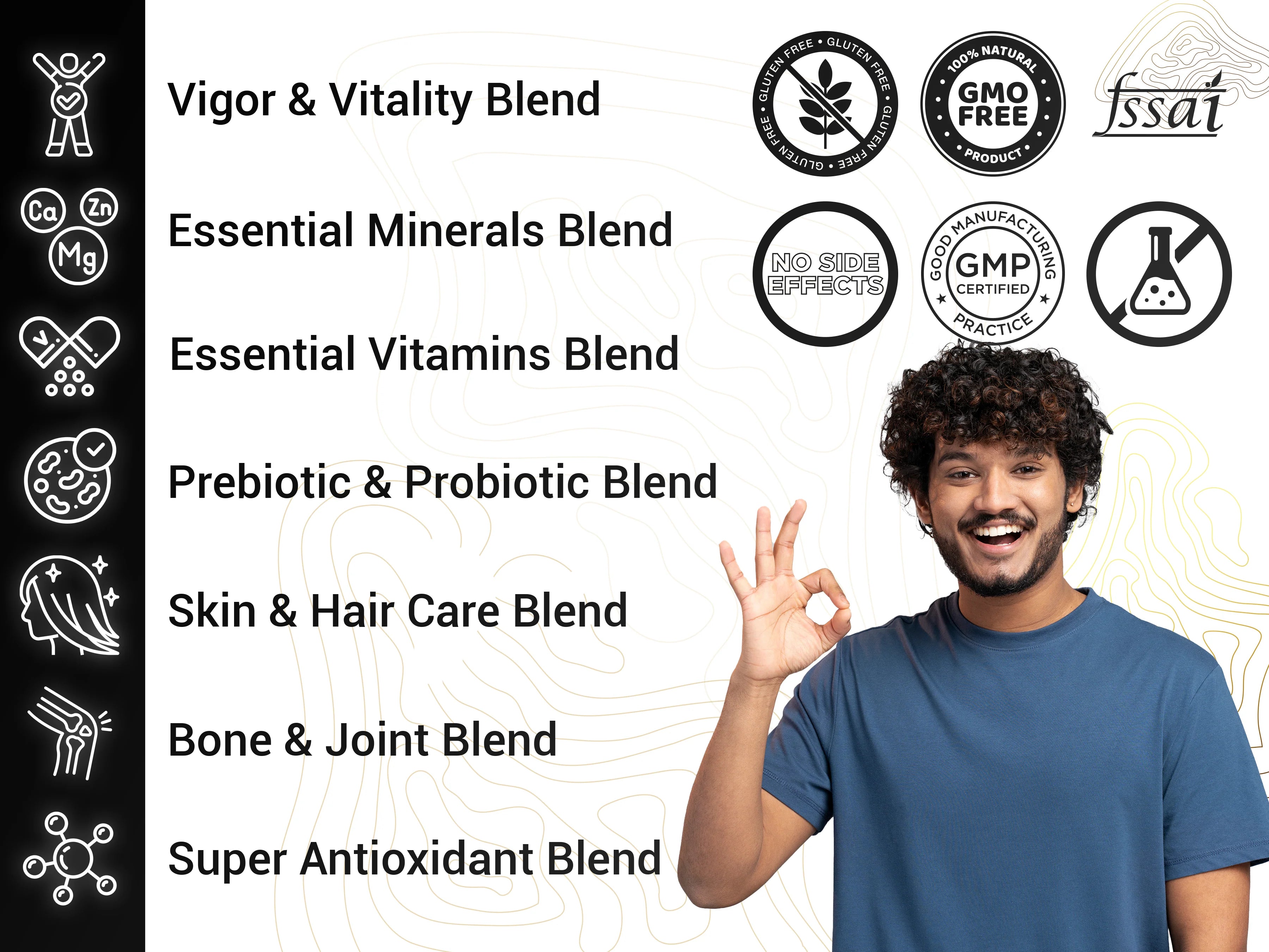 NO SIDE EFFECTS: Natural, free from Fillers, Chemicals & Artificial colors. As an amalgamation of natural ingredients, it is a healthy choice for both men & women.