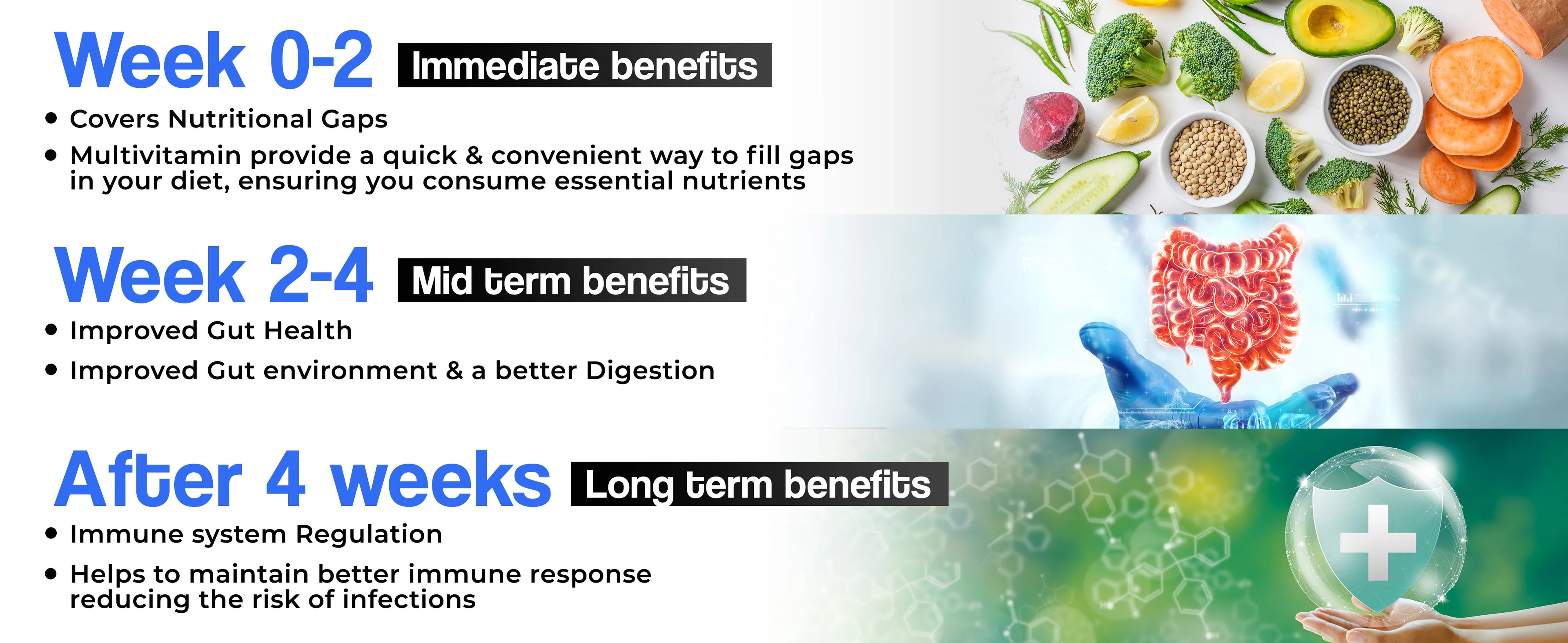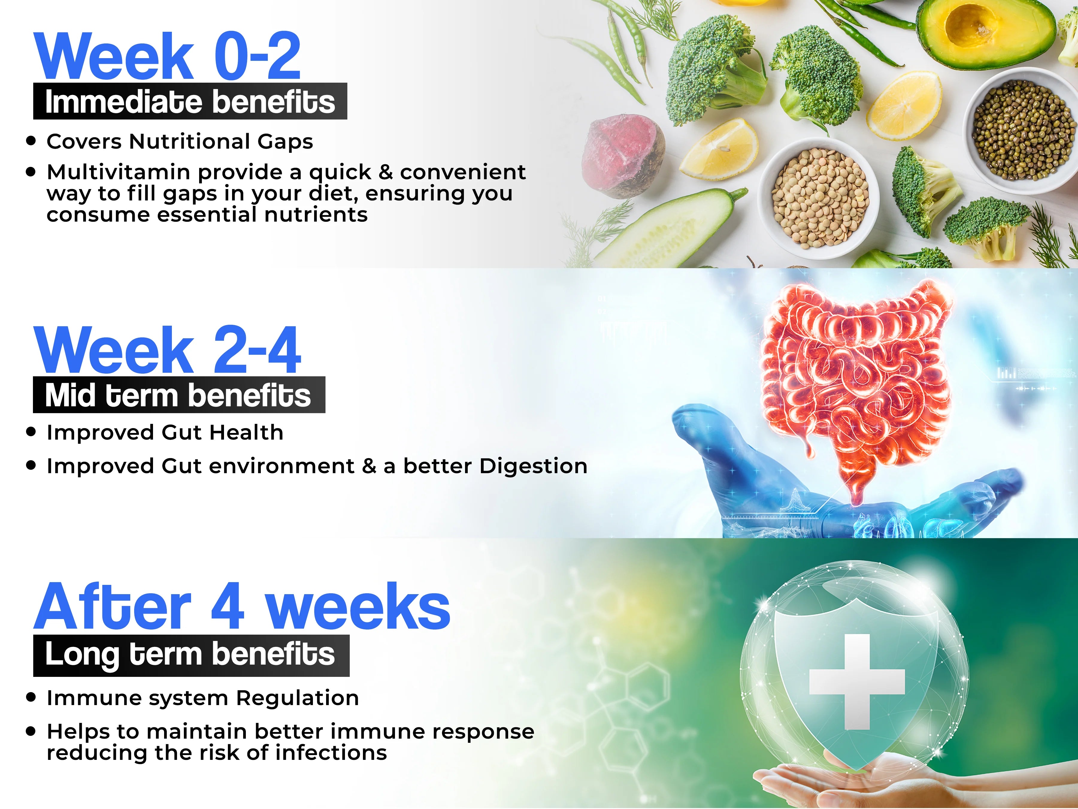 BOOSTS IMMUNITY WITH PROBIOTICS: Cezorn Multivitamin Tablets with Probiotics help in better absorption of multivitamins & minerals, thus increasing the immune system.
